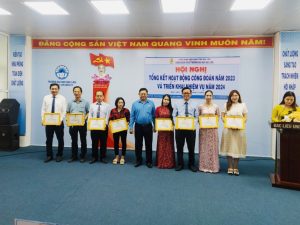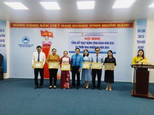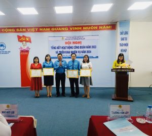 Sau hơn hai giờ làm việc, Hội nghị đã triển khai Báo cáo Tổng kết hoạt động công đoàn năm 2023 và phương hướng, nhiệm vụ năm 2024; Báo cáo của UBKT Công đoàn năm 2023; Biểu dương, khen thưởng những tập thể, cá nhân có thành tích xuất sắc trong hoạt động công đoàn năm 2023.